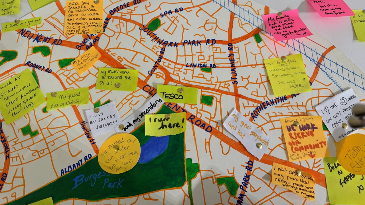 Led by our neighbours at F.A.T. Studio, in partnership with the London Doughnut Economy Coalition, the project connected local organisations including Pembroke House, Livesey Exchange, PEMPeople, and Surrey Square School, alongside artists Veronica Meseckas, Minga Mista, Nebojsa Milikic, Ibiye Camp, and Kitty Finer.